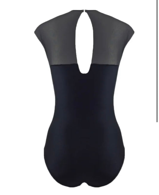 1st Position Lynn Two Tone Hologram High Neck Keyhole Leotard